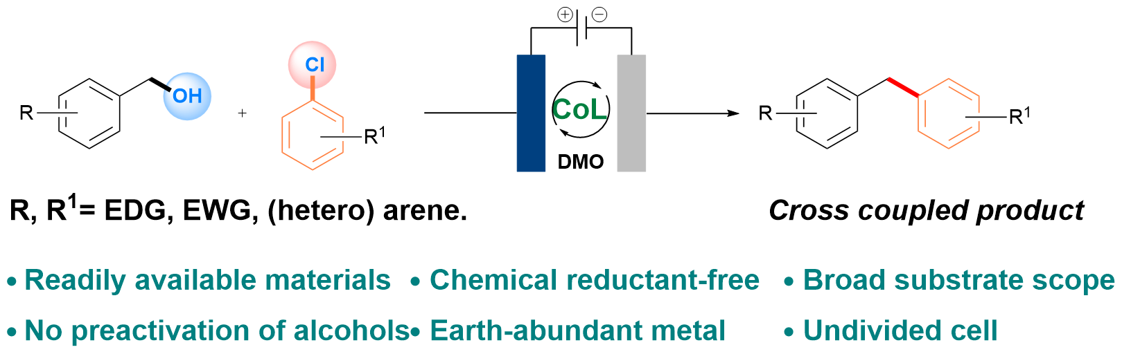 The direct functionalization of alcohols via C–O bond cleavage is a synthetically valuable but challenging transformation. In this work, we report a reductive C(sp3)–C(sp2) cross-coupling reaction between benzyl alcohols and a broad range of aryl chlorides. The success of this transformation is attributed to the development of low-coordinate cobalt/bipyridine complexes, which enable the selective conversion of benzyl alcohols into the corresponding diarylmethanes, while minimizing undesired homocoupling of either the benzyl alcohol or aryl chlorides.